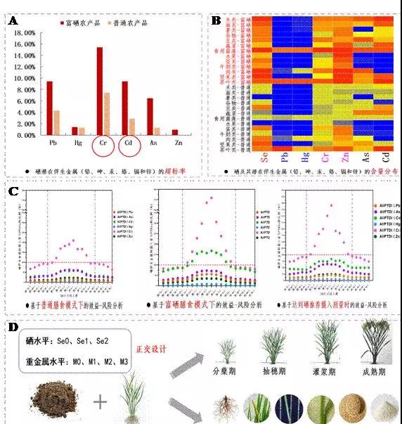 富硒农产品符合消费者营养健康需求,富硒农业近年来得到迅猛发展,但是当前市售富硒农产品存在质量良莠不齐、虚假宣传、无序发展等问题,导致富硒产业受到普遍质疑。同时,富硒农产品还存在伴生金属等潜在健康风险。针对以上问题,农业农村部委托农业农村部农产品贮藏保鲜质量安全风险评估实验室(杭州)【浙江大学】牵头,农业农村部农产品质量与营养功能风险评估实验室(北京)、农业农村部农产品质量安全风险评估实验室(哈尔滨、杨凌)、农业农村部农产品贮藏保鲜质量安全风险评估实验室(北京)、恩施土家族苗族自治州农业科学院、中国农业大学资源与环境学院、南京财经大学等多家单位合作,历时3年(2017-2019年),开展了富硒农产品质量分析与伴生金属危害风险评估工作,旨在对我国市售富硒农产品质量、不同人群硒摄入水平及富硒农产品的效益-风险影响进行分析评估,为规范富硒农产品的生产技术,为富硒产业健康发展提供支撑。