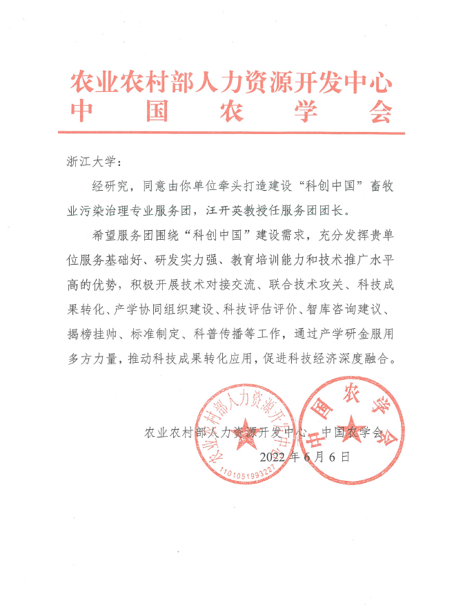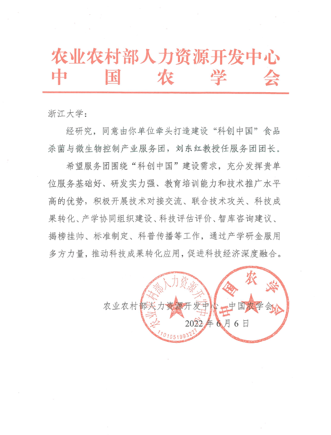 近日,bat365正版唯一官网牵头申报的“科创中国”畜牧业污染治理专业服务团、食品杀菌与微生物控制产业服务团获农业农村部人力资源开发中心批准建设。