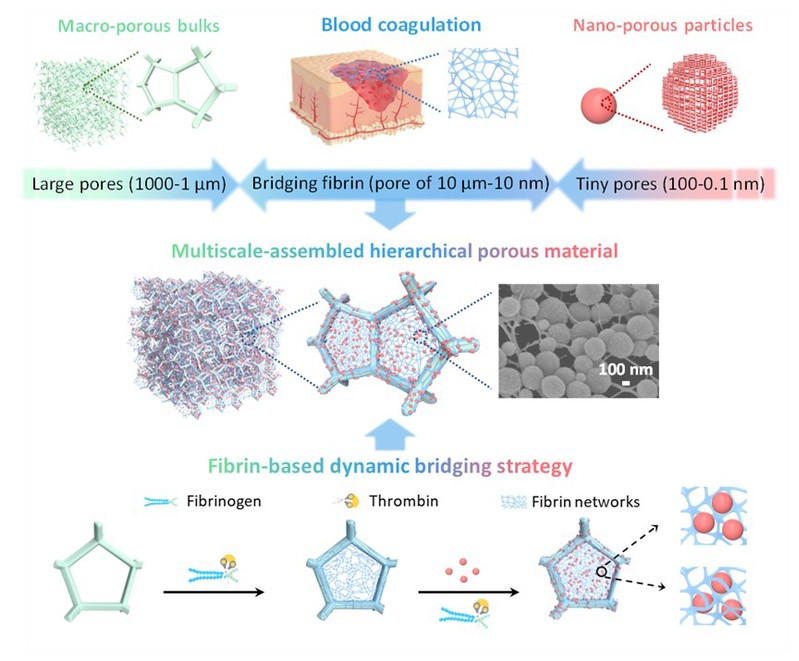 图2 纤维蛋白动态桥联策略构建多级多孔材料