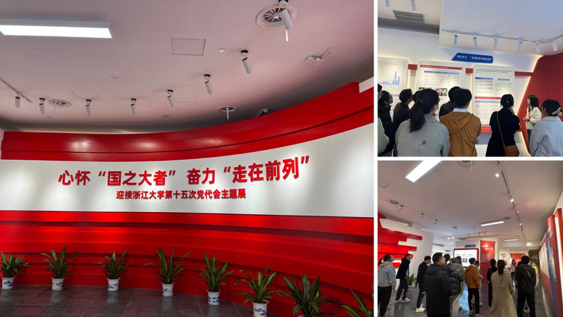 “心怀‘国之大者’奋力‘走在前列’——迎接浙江大学第十五次党代会主题展”系统梳理了习近平总书记关于世界一流大学建设的重要论述,全面重温了习近平总书记关心指导浙江大学的历程,深入总结了20年来学校取得的办学成就,特别是第十四次党代会以来的改革发展经验,全景式呈现了浙大师生心怀“国之大者”、奋力“走在前列”的生动实践。支部党员们漫步于主题展,深入了解浙江大学构建的以学生成长为中心的卓越教育体系,打造世界重要人才中心的战略基地目标,并全面实施开发发展战略,深化国际合作与交流等改革举措。