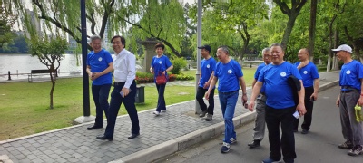 5月4-5日,春正盛绿荫浓,华家池、启真湖,湖水荡漾,鸟语花香,身穿蓝色或白色T恤的一拨拨人群,精神抖擞,或漫步在华家池畔,或穿行在林荫道上,欢声笑语,打破了“五一节”后校园难得的宁静。生工食品学院原农机系、环资学院原土化系77级近七十位校友与部分当年任课老师一起相聚在华家池、启真湖畔,共同纪念校友们入学45周年。