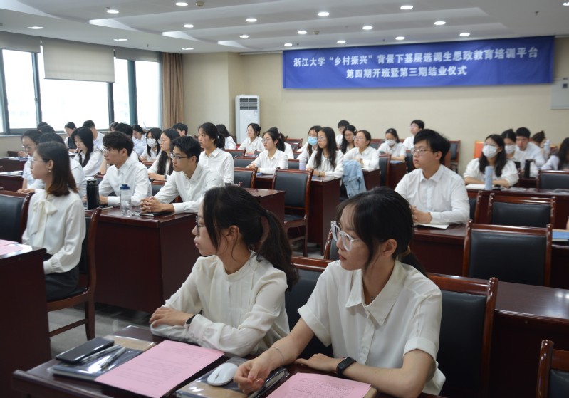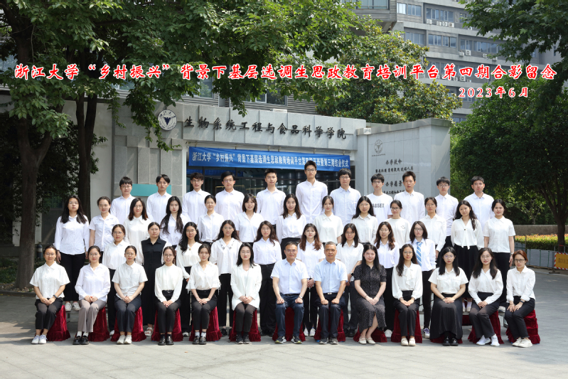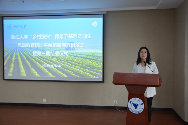 为全面推进乡村振兴、加快实现农业农村现代化,厚植学生“三农”情怀,引导更多青年学子成为爱党爱国、有理想抱负和家国情怀的“乡村振兴”新生力量。2023年6月5日上午,浙江大学“乡村振兴”背景下基层选调生思政教育培训平台第四期开班暨第三期结业仪式在农生环D416报告厅隆重举行。校党委研工部部长张荣祥、生工食品学院党委书记李金林出席仪式。仪式由学院党委副书记王一清主持。