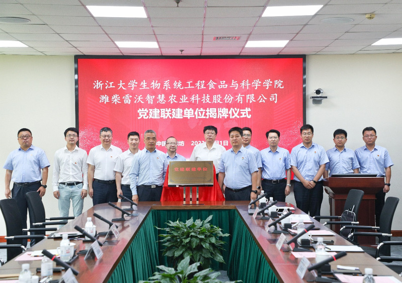 在共建交流会上,李金林介绍了浙江大学生工食品学院的发展现状,希望双方通过党建引领、校企产学研互促,拓展合作领域,将浙江大学优质科研资源与潍柴雷沃产业资源紧密对接,为实现乡村振兴贡献智慧力量。王桂民介绍了潍柴雷沃。潍柴雷沃是潍柴集团重要的战略业务单元,旗下收获机械、拖拉机等业务连续多年保持行业领先。王桂民表示希望双方整合资源、深化合作、协同创新,以支部共建为契机,合力为农业智能装备产业化发展不断进取。随后,李金林与李正宇为“党建联建单位”揭牌。