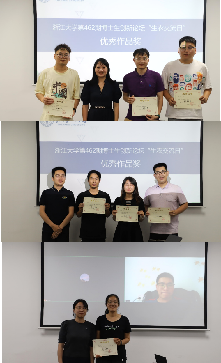 2023年6月9日下午,由浙江大学博士生会、浙江大学研究生会、生物系统工程与食品科学学院研博会联合主办,农业与生物技术学院研博会协办的浙江大学第462期博士生创新论坛之“生农交流日”在农生环大楼D座611室成功举办。本次论坛吸引了来自生工食品学院与农学院的8位优秀研究生进行了学术报告分享。生工食品学院王一娴老师、鲜于运雷老师、卢黄娉老师出席本次博士生创新论坛并担任评委。