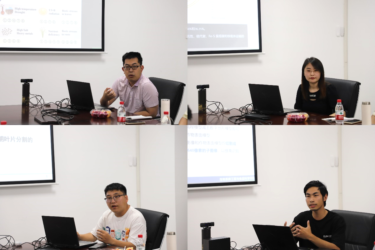 8位报告人精彩地介绍了自己的各项科研成果。庞志豪同学作了《Mechanisms and Application Innovations of Silicon to Relieve Stress for Plants》的研究报告,对硅素营养的研究进行了总结,给硅肥的实际生产和应用提供了理论参考,对污染环境修复和粮食安全有重要意义。高誉芳同学介绍了凝结芽孢杆菌XY2通过生物吸附、肠道菌群和脂质代谢调节改善铜诱导的毒性的研究工作,其首次研究了凝结芽孢杆菌对铜毒性的缓解作用,为铜污染的修复提供了一条有前景的途径。姬旭升同学介绍了一种从RGB图像中自动识别作物叶片像素的鲁棒方法,该方法能够在不依赖样本的情况下准确快速识别不同景观RGB图像中的作物叶片像素,节省了大量人力,性能超越最新的深度学习算法。沈煜韬同学介绍了Mask-RCNN和无人机图像的油菜单株株高高通量表型解析,其提出的方法可以有效提高作物高度估计的准确性,帮助育种家进行作物高度的高通量表型鉴定。