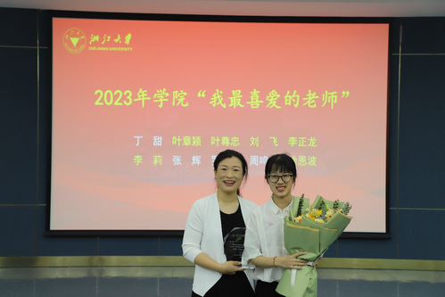 学生代表向2023年学院“我最喜爱的老师”代表送上诚挚的感恩和祝福,并为老师们颁奖、送上鲜花。