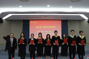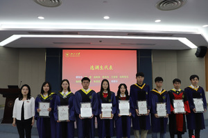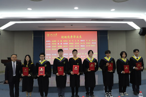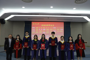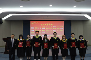 刘鹰为省级优秀毕业生、省级优秀毕业研究生、校级优秀毕业生、校级优秀毕业研究生、校友联络员、本科生十佳论文获得者颁发证书,王一清为选调生代表颁发荣誉证书,向毕业生代表赠送纪念品。