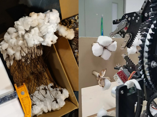 测试中,盛泽楠发现赛场棉花相比国内自制棉花更加松散,导致原本训练的深度学习模型识别准确率不理想,在和国内负责机器视觉的队友商量后,盛泽楠抓紧补拍了近五百张棉花图片发送回国,作为新增数据集重新训练模型。国内队员们则熬夜为图片做标注——每张图片上都要标注出每朵棉花和每个棉铃的位置,用于深度学习模型的训练。“标注完之后还要进行测试、传递数据集,从晚上8点到凌晨5点,大家都聚在实验室远程交流,解决问题。”高级组国内队员,2020级本科生吴子豪说。