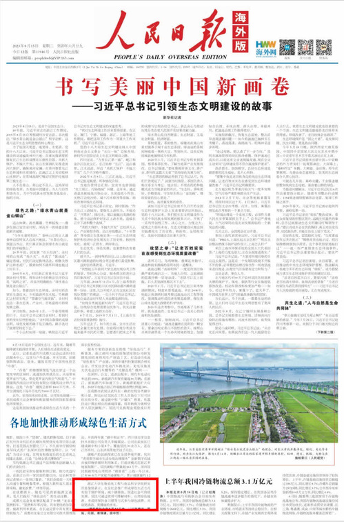 《人民日报》海外版是中国共产党中央委员会的机关报,面向全球发行,是中国在境外发行量最大的综合性中文报纸,也是世界了解中国、中国走向世界的窗口。人民日报海外版的报道向全球华人和国际社会展示了浙江大学在各个领域的创新能力和贡献,提升国际声誉和影响力。同时也为bat365正版唯一官网师生们树立了一个优秀的榜样,激励我们继续努力,为国家和社会服务,为生态文明建设作出贡献。