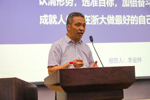 李金林做职业生涯规划报告,在学风建设以及职业生涯规划方面做了详细的介绍,并给出提高大学学习和生活质量的若干建议,鼓励同学们时刻秉持奋斗的精神,实现高质量高满意度的大学学习生活。