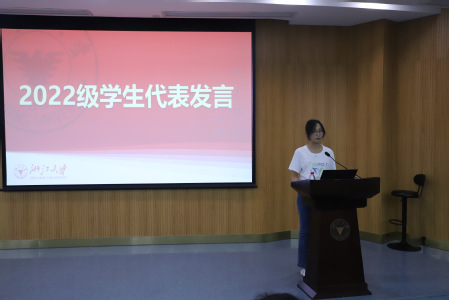 2022级学生代表俞心瑶分享了对专业发展和个人使命的思考,并期待与同学们携手并进,共同书写属于他们的精彩篇章。