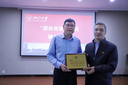 李金林为“荣休党课”嘉宾颁发聘书。