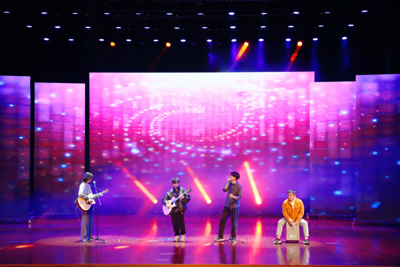 由童浩城等带来的乐队表演《找自己》、《To be with you》,曲调活泼欢快、轻松愉悦,希望大家在新的一年能开心顺利,追求内心的理想做自己,也把美好带给身边的人。