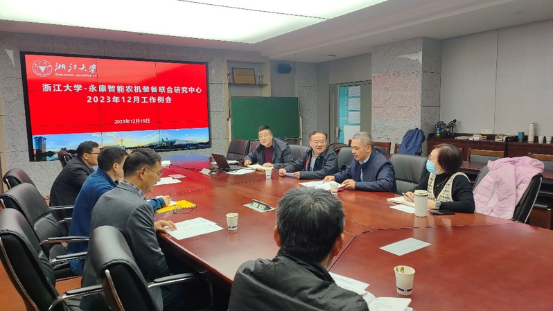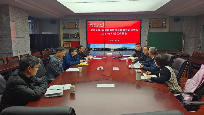 20231215日,浙江大学-永康智能农机装备联合研究中心在农生环组团D430会议室举行12月份工作例会暨专题工作讨论会议。会议主题是讨论决定中心2023年度开放课题立项,2024年工作计划、以及2023年中心工作总结交流等等事宜。中心管委会主任、生工食品学院刘鹰院长和管委会成员以及中心主任和副主任参加。会议由中心主任、生工食品学院李金林书记主持。