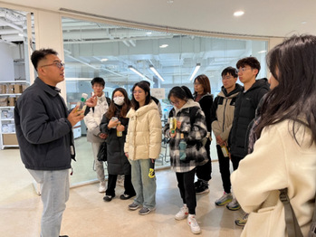 刘培峰经理带领大家参观了养生堂总部的研发大楼。研发大楼内各实验室为集团的产品提供质量监督、感官品评、技术开发、功效评价等技术服务支持。刘培峰经理向大家详细介绍了产品如何从实验室走向工厂,再走向市场,让同学们明白了一个产品能抵达消费者手中是各种因素相互制衡的结果。