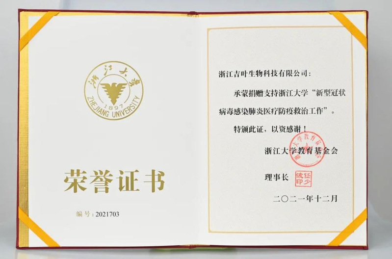 浙江吉叶生物科技有限公司、青岛博尚智渔、旺旺集团、邻家好医、上海韦希尔和爱科漫科技等向浙江大学捐赠物资和经费