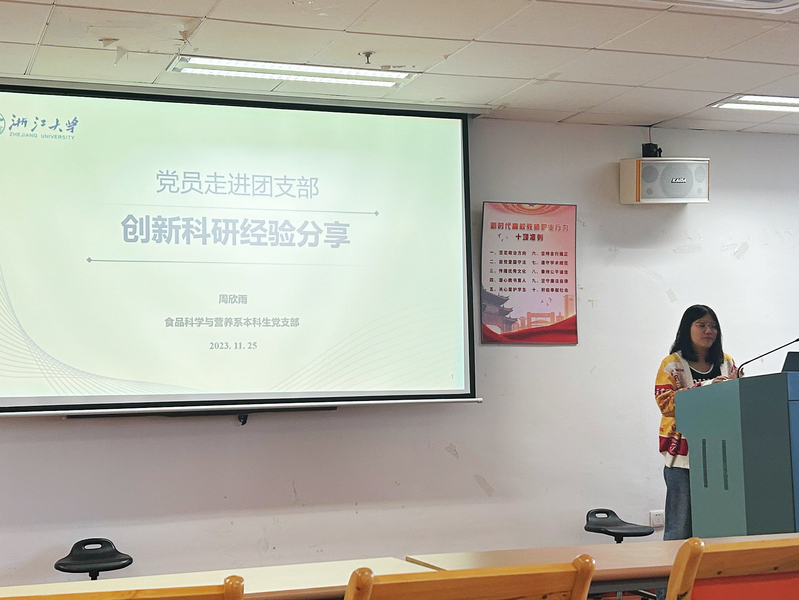学院生物系统工程系本科生党支部、食品科学与营养系本科生党支部设立“优良学风党员先锋岗”,充分发挥高年级党员的先锋模范作用。党员与团支部结对,依托班会、团支部会议,深入团支部开展主题宣讲,实现学院12个本科生班级全覆盖;20名党员参与18门课程的教学管理,助力学院学风建设;为31人次提供“1对1”学业咨询,发挥朋辈力量帮助学生答疑解惑、排忧解难。