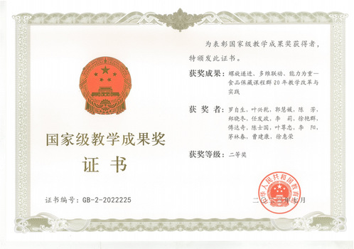《螺旋递进、多维联动、能力为重——食品保藏保鲜课程群20年教学改革与实践》荣获2022年高等教育(本科)国家级教学成果二等奖,该成果首次提出“课程链+主题链”双螺旋课程群组织新模式,建成开放式国家一流课程和多元化实践平台。罗自生教授及项目团队从《果蔬保鲜工程》《食品安全保藏导论》等课程出发,探索专业课程群教学体系建设并创新教学内容,设置了涵盖必修课程、实践课程、通识课程和个性化课程在内的课程群。该成果率先在教学内容中增加了工程化课程内容,强化了学生专业综合知识结构;完善了学生科研创新平台,在培养学生创业创新能力、提升毕业生的工作岗位胜任能力等方面取得了卓越成效。