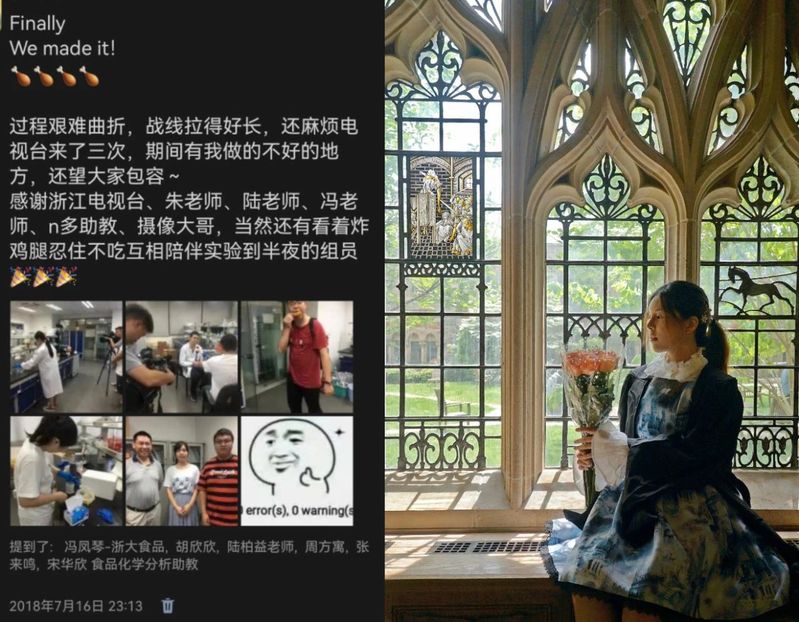 回顾自己的留学经历,沈欣怡表示自己想对学弟学妹们说:“如果是想申请出国,要尽快把必修课和语言解决掉,不要堆到大四和毕设一起进行。还有就是多多体验学科交叉,利用好食品作为交叉学科的特点,深耕自己的专业知识,并将其和时代热点技术相联系,拓展更多的可能性。”