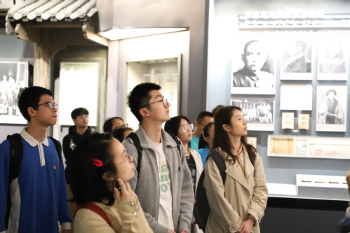 师生共同前往嘉兴市南湖革命纪念馆,共同参观了以“红船起航”为主题的展览。在讲解员的带领下,党员同志们沿着“救亡图存”“开天辟地”“光辉历程”“走向复兴”四个专题的展示区域逐一参观,既行走思考,又倾听领悟。面对一件件珍贵展品和一个个鲜活事例,师生党员心中涌起对革命先辈的崇高敬意与深切缅怀。从义愤填膺的“救亡图存”到信心满满的“走向复兴”,师生党员深刻认识到,唯有中国共产党,能唤醒、团结、带领中国人民,将人民凝聚成强大的历史创造主体,引领人民开启新生、创造新未来。