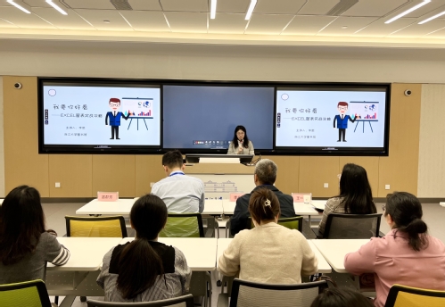 图书馆李懿老师针对管理支撑队伍日常工作需求作了Excel图表制作实务培训。会后,机关支部党员参观了图书馆主馆。