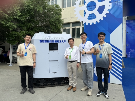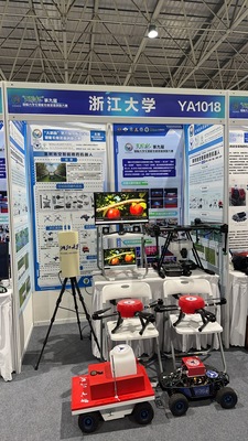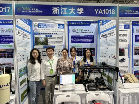 在何勇、冯旭萍、何立文、刘羽飞老师指导下,研究生侯冰茹、徐奕昕、俞泽宇及本科生章胧心、陆慧姿共同完成了《果树地空智能喷药机器人》作品荣获特等奖。该作品针对果园植保作业中存在农药用量大、施药不均匀、作业效率低等问题,提出了一种空地协同喷施系统,结合无人机和地面无人车实现多机车空地协同作业,通过更改集群编队模式可满足多种果园作业环境需求,提升作业效率和效果。
