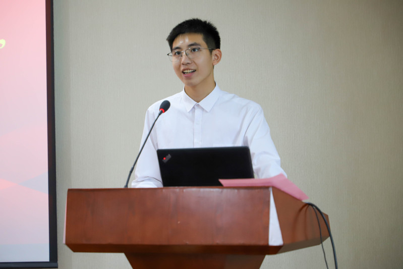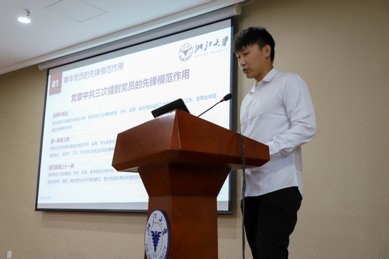 宣讲团团长蔡志宇发言,他表达了宣讲团的态度和决心,宣讲团将加强理论学习、深挖身边素材、切实走进师生,以坚定的信仰、生动的故事和实际的行动,彰显青春风采,讲好中国故事、浙大故事、生食故事,传递青年之声与精神力量。