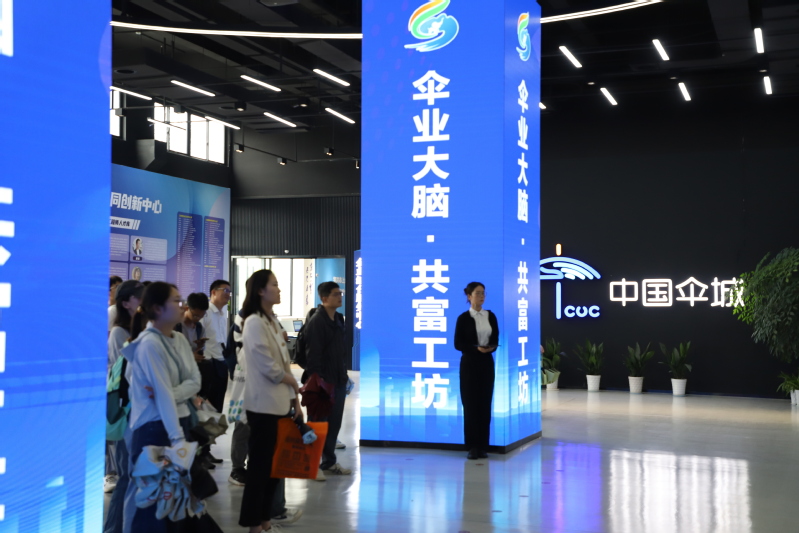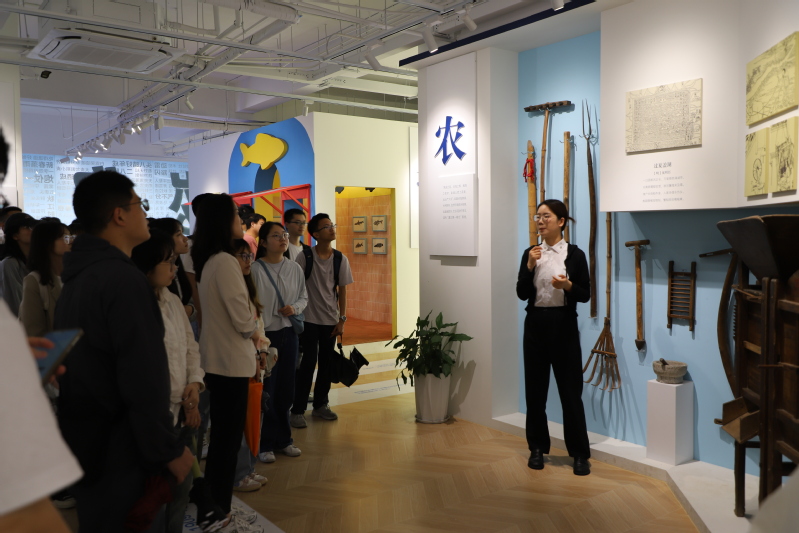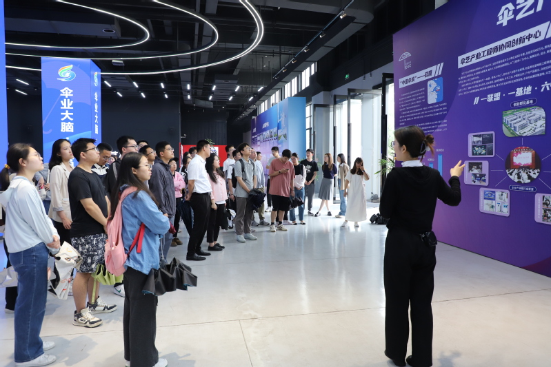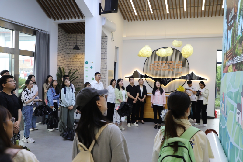 在上虞区组织部副部长陈俊杰的带领下,师生一行参观了上虞区崧厦街道崧厦馆和伞艺小镇,深入学习了解了伞城崧厦的历史人文与独特魅力。崧厦因海而生、向海而兴,兼人文昌盛、名贤辈出。在崧厦馆,师生们参观了“你好崧厦”“枕海书房”“乡愁博物”三层展示空间,通过当地出土的陶器碎片、崧厦人日常海涂采捕所用工具、特色民居及城建工具、民风民俗模型、乌金纸非遗等照片实物展陈和新型社区互动阅读文化空间体验,在场师生深度感受到了崧厦1600年来的历史积淀与人文往事、崧厦遗珍与崧厦智造、崧厦乡愁与崧厦温度。在伞艺小镇,师生一行参观调研了崧厦伞业发展历史与产业蝶变升级,详细了解了非物质文化遗产、伞艺体验项目、伞文创、户外露营装备制造等情况,切实领略到了“中国伞城”的魅力与其创新转型的成功经验。