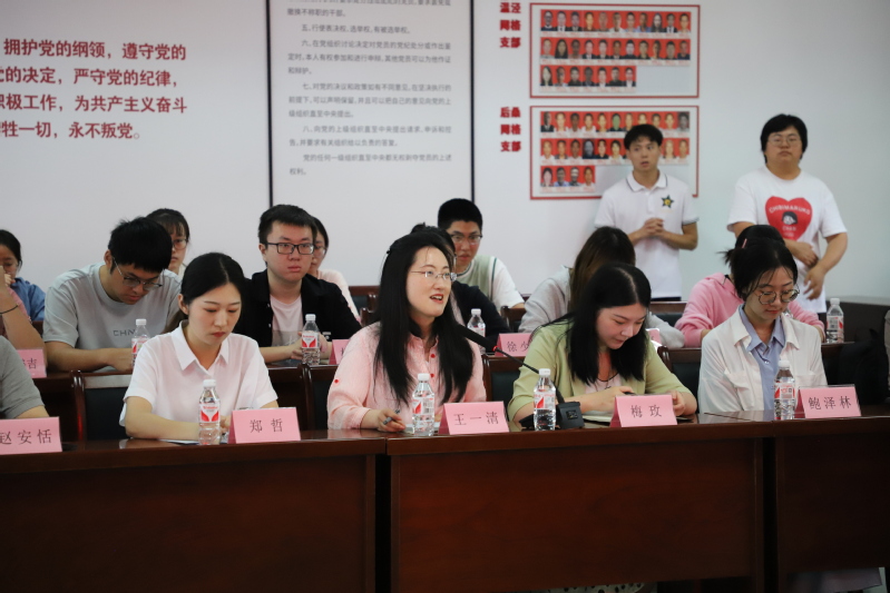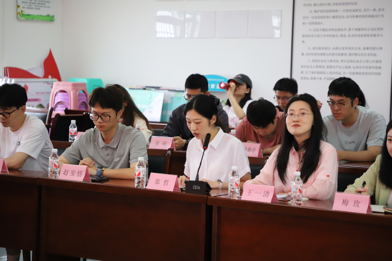 食科一党支部副书记郑哲发言。她表示,作为“全国党建工作样板支部”培育创建单位,食科一党支部创新涉农学科联学联建党建新模式,自2021年与绍兴上虞祝温村党总支结对共建以来,双方每年开展联学联建活动,先后围绕党史学习教育、学习贯彻二十大等主题联合开展“行读党史”教育活动和“乡村振兴共助力”主题实践活动。支部成员切实提升了党性修养,培育了爱农情怀,学习到了当地在党建引领、农业生产、食品加工、乡村文旅等方面的先进经验,并积极发挥专业优势助力美丽乡村建设。未来,党支部将进一步强化与祝温村联建共建,不断引领涉农学子心怀“国之大者”,奋力“走在前列”,在乡村振兴的广袤田野上贡献青春力量。