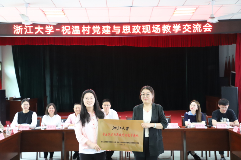 为进一步推进学生党建与思政教育载体建设,打造党建育人共同体和特色思政教育平台,学院与祝温村合作共建浙江大学学生党建与思政现场教学基地。座谈会上,王一清向许亚萍授牌。