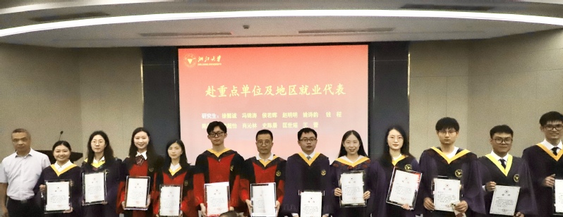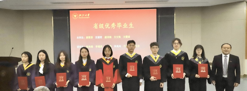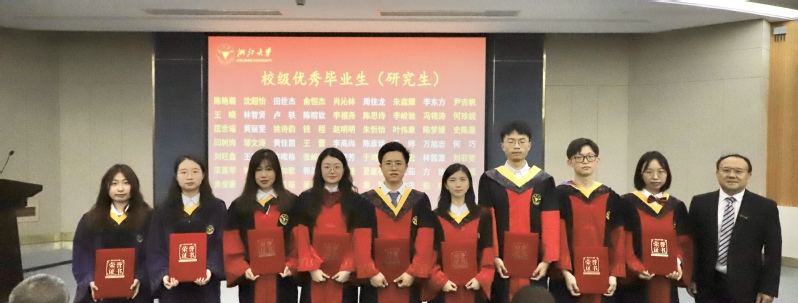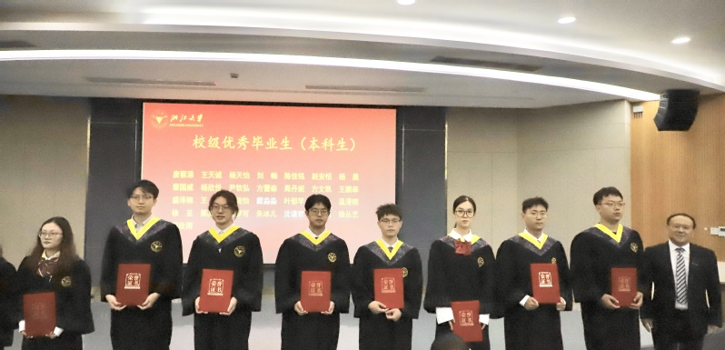 刘鹰为省级优秀毕业生、省级优秀毕业研究生、校级优秀毕业生、校级优秀毕业研究生、本科生十佳论文获奖者颁发证书,李金林为选调生、赴重点单位及地区就业代表颁发感谢状,刘东红为校友联络员颁发聘书,王一清向毕业生代表赠送纪念品。
