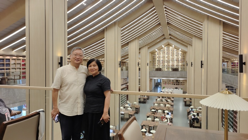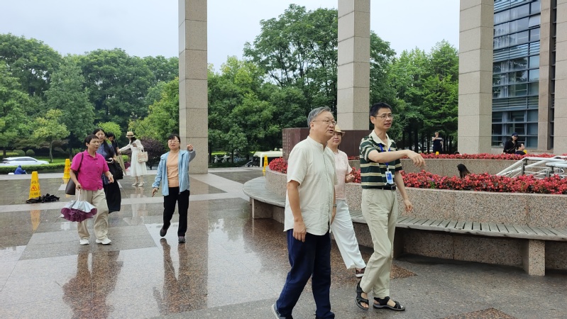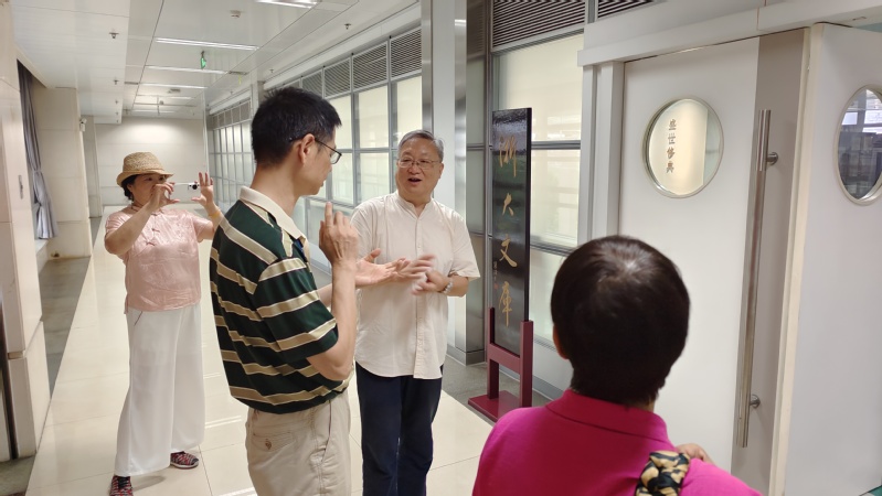 仲夏时节,雨水沥沥。625日上午,雨雾中的紫金求是园、图书馆,走进一位自莫干山而来的谦逊、儒雅之士——学院宁波分校农机化83届校友慎志浩及随行的莫干山书友。浙江大学图书馆古籍特藏部韩松涛部长及高艳两位老师在基础图书馆一楼廊厅热情迎接慎志浩馆长一行。