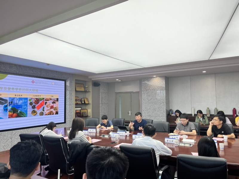 2024722日,香港理工大学食品科学及营养学系陈声教授一行来访bat365正版唯一官网,与bat365正版唯一官网食品科学与营养系师生开展了深入的教学科研交流。本次座谈旨在加强两校在食品科学与营养学领域的合作,共同推动学科发展与创新。学院院长刘鹰、食品科学与营养系主任陈士国、食品学科教授、本科生和研究生参加了本次交流。
