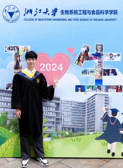 与生工食品很多优秀的同学相比,我在学院的各种事务和活动的参与度上比较默默无闻,课程的平均绩点也只是中等偏后,而且一直觉得自己做什么都比较失败,但是我想这是大部分人的状态。总结大学四年,走过许多弯路,也曾长时间迷茫摆烂,但任何时间努力都不晚。只要我们有一个想到就激动的目标,始终相信自己,遇到困难不放弃,坚持下去,我们终会有一个还不错的结果。感谢浙江大学,感谢生工食品学院,感谢农业工程专业,陪我度过这宝贵的本科四年时光。想对学弟学妹们说,成长的过程中每段经历都有其意义,我鼓励大家在最美好的年纪多多尝试、探索无限可能,并学会从这些经历中充分地认识自己。愿大家都能在自己的人生赛道上稳步前行,对于竺老校长的两问,都能有无愧于心的回答。