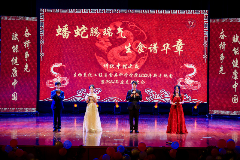 20241212日晚,蟠蛇腾瑞气,生食谱华章:科跃中楷之夜生物系统工程与食品科学学院2025年新年晚会暨2024年度表彰大会在浙江大学紫金港校区小剧场隆重举行。华灯焕彩,学院全体师生齐聚一堂,共同迎接新年的到来。