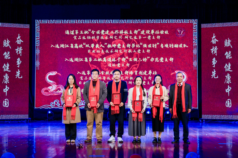 学院对通过第三批“全国党建工作样板支部”建设单位验收的食品生物科学技术研究所研究生第一党支部、入选浙江省高校“双带头人”教师党支部书记“强国行”专项行动团队的农业信息技术研究所教工党支部、入选浙江省第二批离退休干部“三强六好”示范党支部的退休党支部、入选第三批全校样板支部培育创建单位的食品生物科学技术研究所教工党支部和农业生物环境工程研究所研究生党支部、入选浙江大学第二批本科生党建业务互融互促示范党支部的生物系统工程系本科生党支部,以及荣休贡献奖获得者、新入职教职工、教育部青年长江学者、国家高层次人才特殊支持计划青年拔尖人才获得者、农业农村部神农青年英才、科睿唯安全球高被引科学家、爱思唯尔高被引学者、国家科学技术进步奖二等奖获得者、浙江省自然科学奖二等奖获得者、浙江省科学技术进步奖二等奖获得者、浙江省科学技术进步奖三等奖获得者、国家自然科学基金杰出青年项目获得者进行了表彰,鼓励他们以拼搏之姿助力乡村振兴,服务国家社会。
