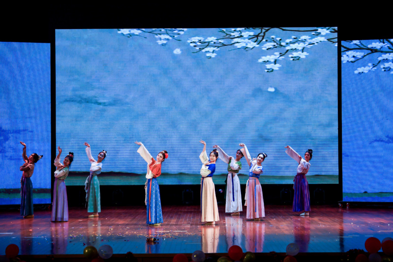 亦心·民韵舞社带来舞蹈表演《裙幄宴》,轻纱如云雾缭绕,裙裾似水波荡漾,舞姿翩跹若惊鸿,步履轻盈踏歌行,是对古典美学的生动诠释。