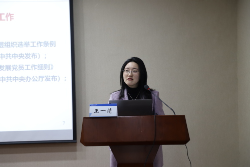 梅玫作《党员发展规范与实务》专题培训,闫凯亚作《党支部组织生活规范与实务》专题培训,张文馨作《做好党支部宣传工作 加强党员信息化管理》专题培训。
