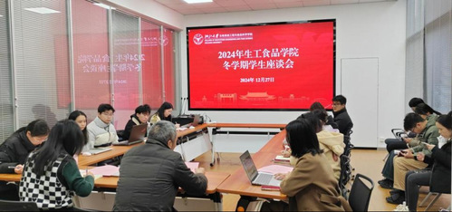 20241227日下午,生工食品学院在农生环D座一楼和合文化之家召开2024年冬学期学生座谈会。学院党委书记李金林、党委副书记王一清、专职组织员张文馨、团委书记梅玫、团委副书记闫凯亚及本科生、研究生学生代表出席会议。座谈会由王一清主持。