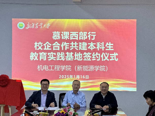 新疆农科院加工所代表阿塔吾拉·铁木尔,企业代表马壮、姚丁香依次发言,他们分别从产业需求、技术创新、实践应用等角度,阐述了企业的发展现状与未来方向,表达了对共建学生教育实践基地的高度重视与全力支持,期望通过与高校的深度合作,补齐技术短板,同时为行业培养更多优秀人才。在热烈的氛围中,现场举行了签约、揭牌仪式。随后,与会各方就项目实施细节展开深入讨论,围绕实习课程设置、实践教学指导、学生观念培养等问题各抒己见,为基地后续高效运行筑牢基础。