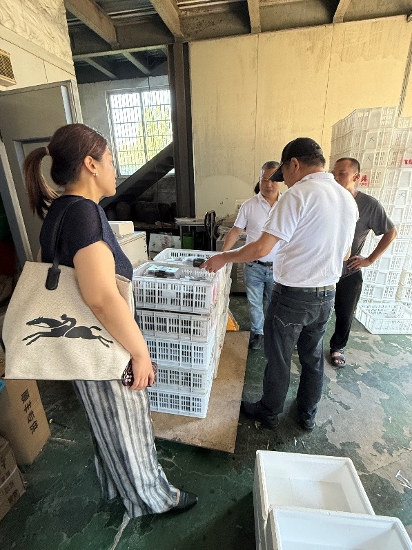 6月27日,在文成县科学技术局主任邓昌斌、叶夏芳陪同下,专家和研究生们一行赴文成县仰山杨梅专业合作社进行深入调研。在合作社负责人的介绍下对杨梅贮运过程中遇到的各种问题提出精准解决方案,指出杨梅采后人工分级、预冷保鲜和真空包装流程中的关键操作点,助力文成杨梅产业发展。