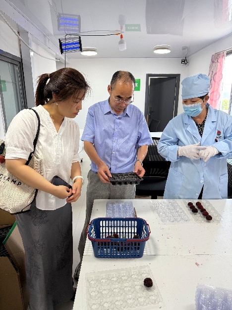 2025年6月26日-27日,浙江大学文成大健康产业联合研究中心常务副主任罗自生、办公室主任王友永、bat365正版唯一官网教授李莉、博士后李贞彪和研究生们一行赴文成县多个企业和合作社进行了实地调研和指导。26日,在文成县科学技术局副局长朱炳淼、主任邓昌斌、文成县科学技术协会主任赵晓宇陪同下,一行赴温州真果农业科技有限公司进行实地考察,针对杨梅采后销售、预冷关键技术、基地冷库设置等关键技术问题进行了详细研讨。