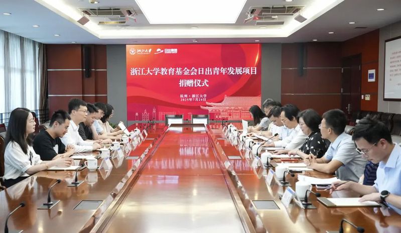 蝉鸣织夏,生机盎然。7月24日上午,日出实业集团有限公司(以下简称“日出集团”)向浙江大学教育基金会捐赠仪式在浙江大学紫金港校区举行。浙江大学党委常委、副校长黄先海,日出集团总经理、2002届化工工艺专业校友金连强出席仪式并讲话。浙江大学团委书记徐晓峰,化学工程与生物工程学院党委书记、副院长吴锋,党委学生工作部副部长王巍贺,教育基金会副秘书长徐瑞君以及多位现就职于日出集团的浙大校友共同参加仪式。仪式由浙江大学发展联络办公室主任、校友总会秘书长、教育基金会秘书长刘峥嵘主持。
