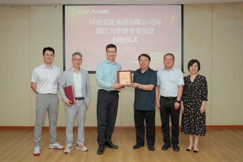 2024年7月24日,日出集团首度向浙江大学捐赠,并自2024年起连续10年每年向浙江大学教育基金会捐赠,用于设立“浙江大学日出集团向阳奖学金”,奖励浙江大学化学工程与生物工程学院、材料科学与工程学院、高分子科学与工程学系、生物系统工程系(生物系统工程与食品科学学院)、国际经济与贸易专业(经济学院)全日制在校本科生和研究生。学院院长刘鹰代表学院出席捐赠仪式,并在会上表示,日出集团深植“责任、创新、健康、科学、发展”于企业文化,体现了企业良好的文化和技术价值追求。校友是学校最宝贵的教育产品,非常开心目睹众多优秀校友学业有成后饮水思源,积极回馈母校与社会,这份深情厚谊令人动容,也在当代大学生中影响深远。“浙江大学日出集团向阳奖学金”不仅仅是一种激励,更是一座链接企业价值理念与学校期待的桥梁,期待双方合力培育出更多学识深厚、社会责任感强的新时代人才。