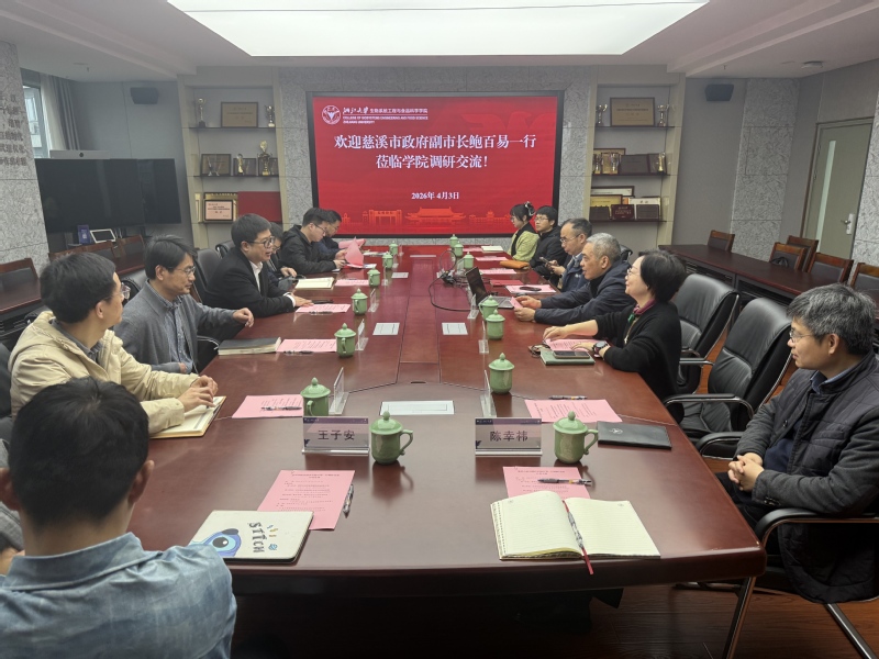 2026年4月3日,慈溪市副市长鲍百易一行来学院考察调研,学院党委书记李金林、副院长罗自生、求是特聘教授岑海燕、党委委员裘正军等参加活动。