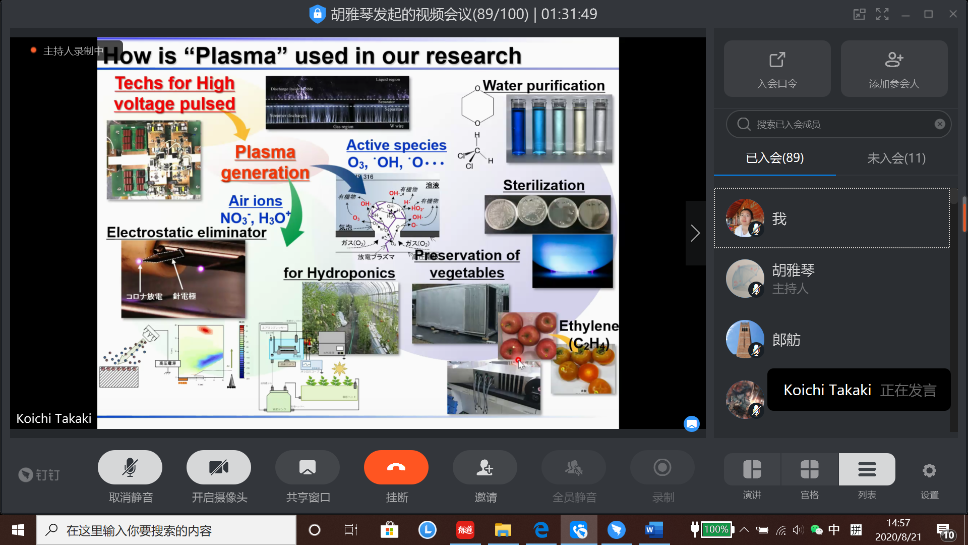 Next, Dr. Koichi Takaki gave a lectureon “Pulsed Power and Plasma Applications for Agriculture and Food processing”.He introduced his research on developmentand employment of repetitively operated compact pulsed power generators with amoderate peak power for applications of agriculture and food processing.