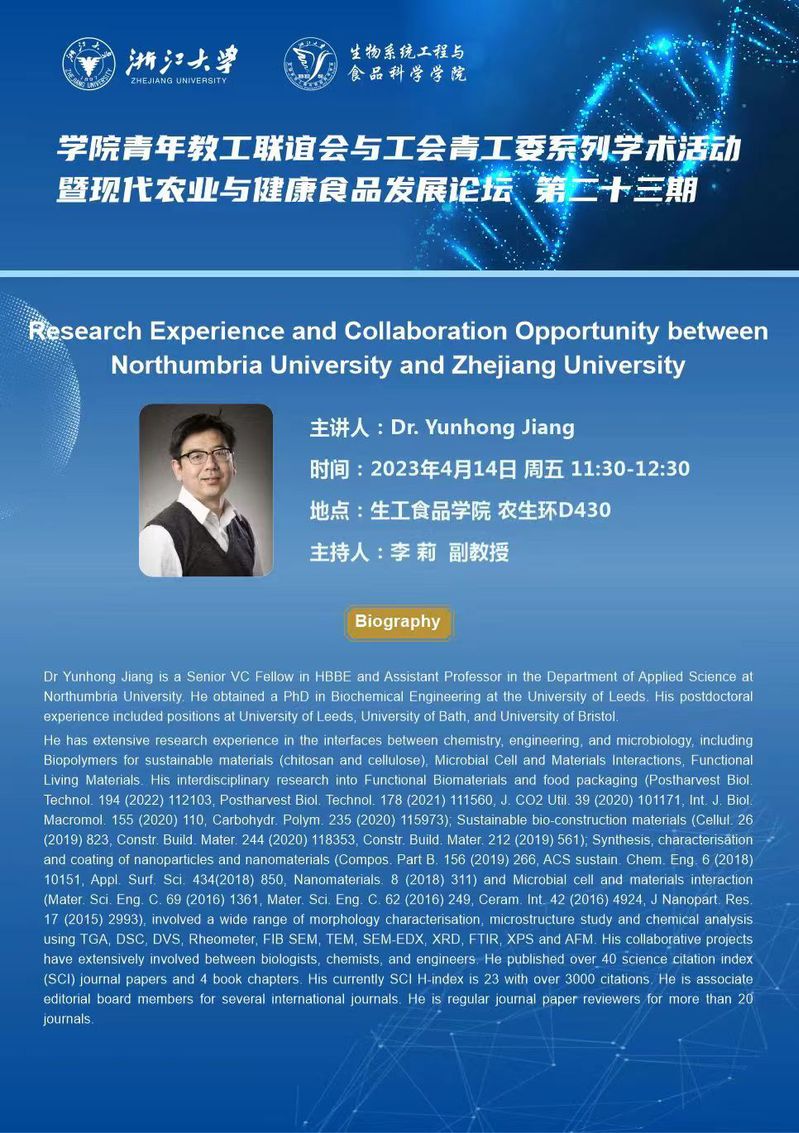 Research Experience and Collaboration Opportunity between Northumbria University and Zhejiang University